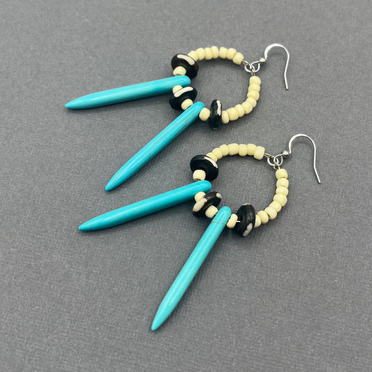 Tribal Turquoise and Bone Beaded Hoop Earrings