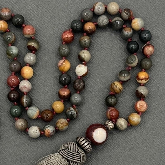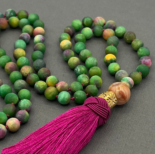 Polychrome Agate/Desert Jasper Mala Necklace, Necklace with tassel, Yoga gift, Meditation Beads, Yoga Beads, BoHo necklace, Prayer Beads