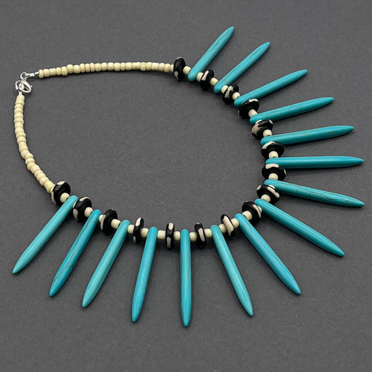 Tribal Turquoise Howlite Dagger and Bone beaded collar Length Necklace