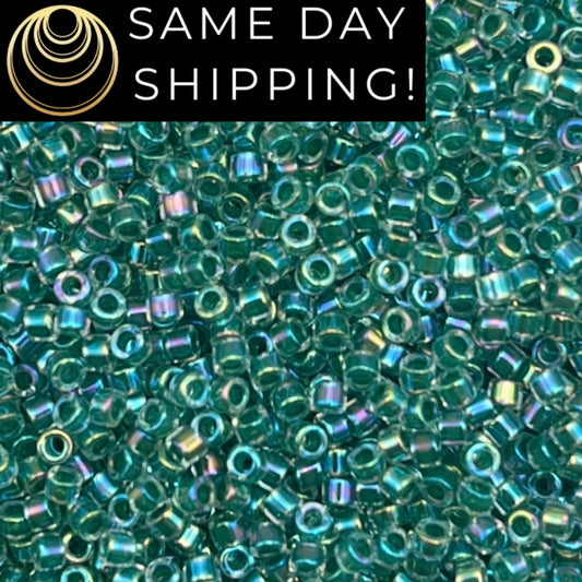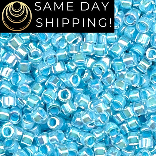 DB057 11/0 Miyuki Delica Beads Aqua Lined Crystal AB