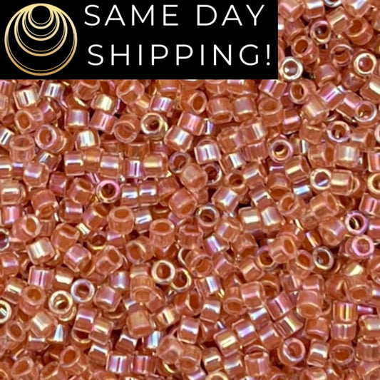 DB052 11/0 Miyuki Delica Beads Pale Peach Lined Crystal AB
