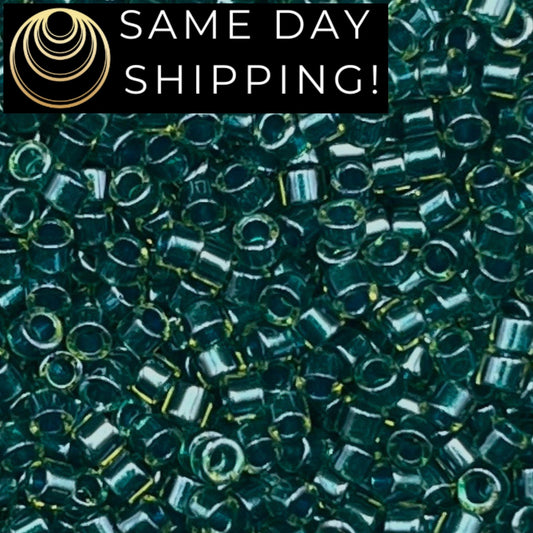 DB919 11/0 Miyuki Delica Beads Sparkling Dark Teal Lined Chartreuse