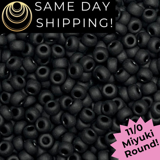 11-0401F 11/0 Miyuki Round Seed Beads Matte Black
