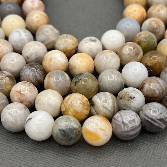 Natural 4mm/6mm/8mm Bamboo Leaf Agate Smooth Round Strand of Beads