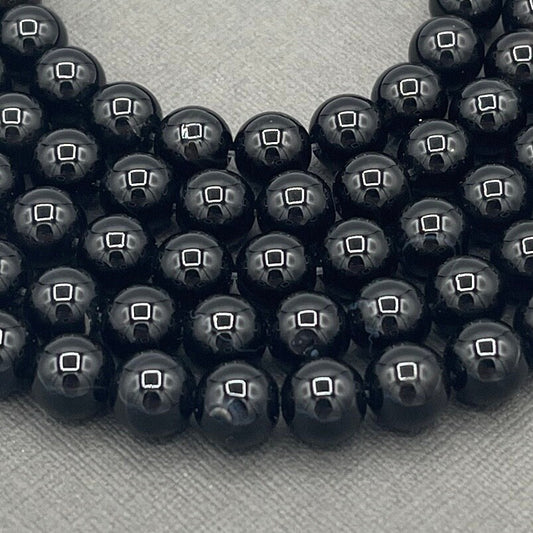 Natural 4mm/6mm/8mm Smooth Round Black Onyx Gemstone Strand of Beads