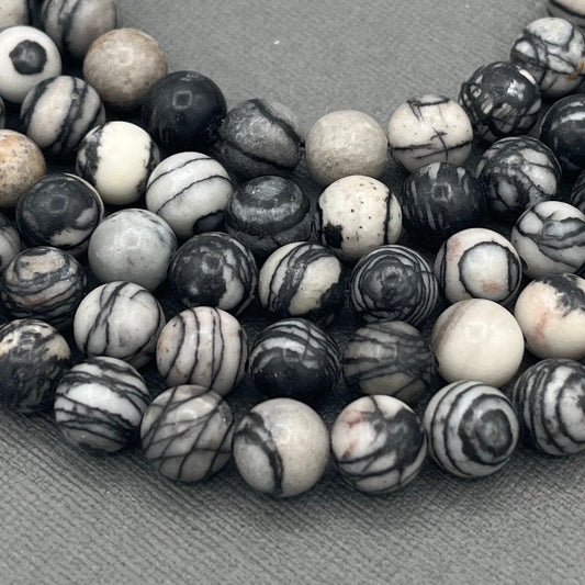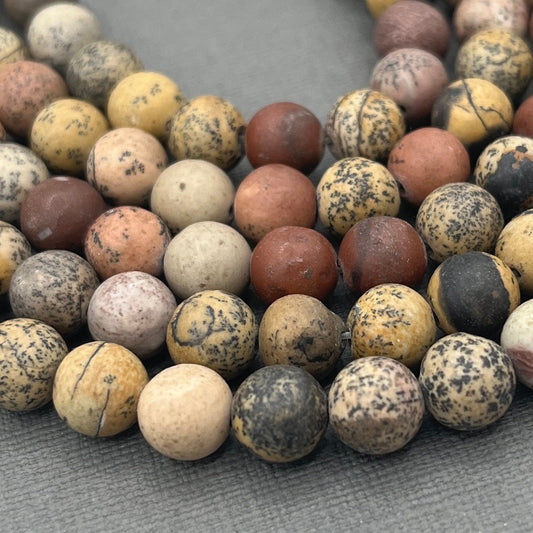 Natural 8mm Smooth Matte Round Dendritic Jasper Gemstone Strand of Beads, Chohua Jasper