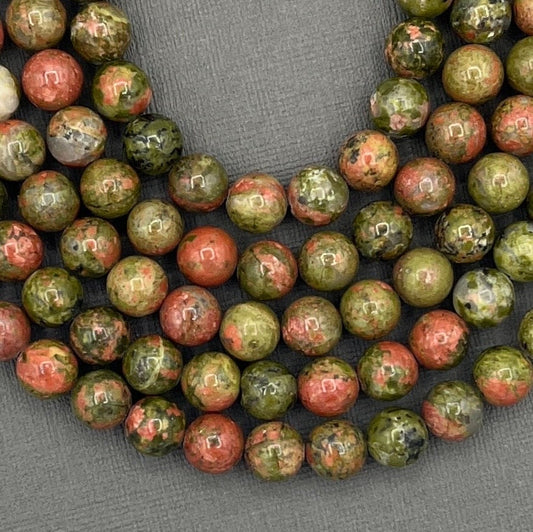 Natural 8mm Smooth Round Unakite Gemstone Strand of Beads