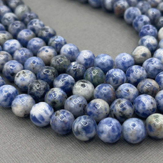 Natural 8mm Smooth Round Blue Spot Jasper Gemstone Strand of Beads