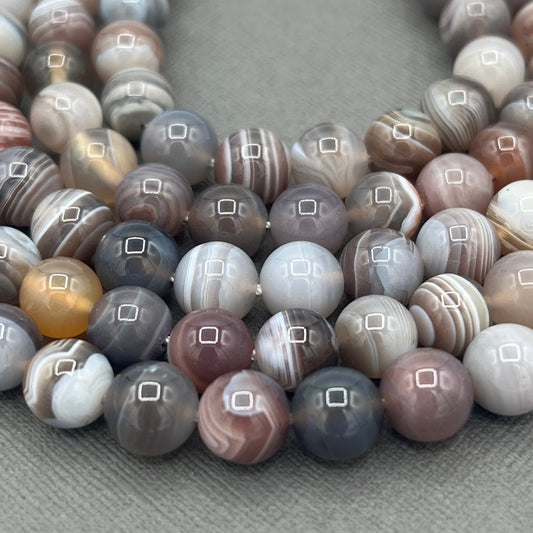 Natural 8mm Smooth Round Botswana Agate Strand of Beads