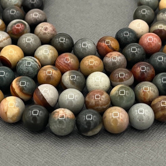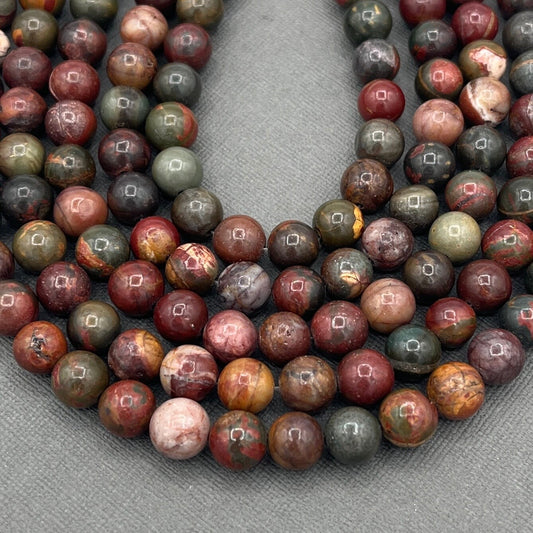 Natural 8mm Smooth Round Picasso Jasper Gemstone Strand of Beads, Red Creek Jasper