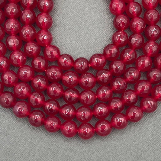Natural 8mm Round Faceted Deep Cranberry Red Jade Strand of Beads