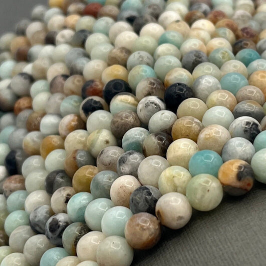 Natural 4mm/6mm/8mm Smooth Round Flower Amazonite Gemstone Strand of Beads