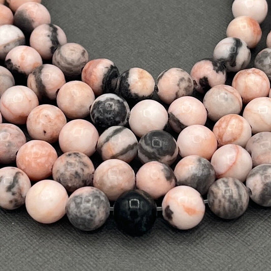 8mm Smooth Round Zebra Jasper Gemstone Strand of Beads