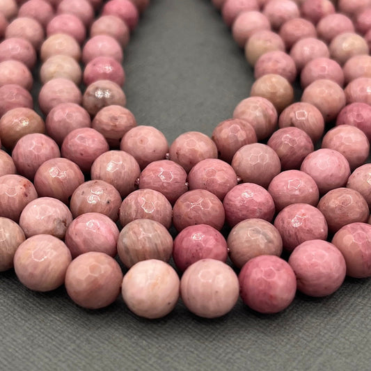 Natural 8mm Faceted Round Rhodonite Gemstone Strand of Beads