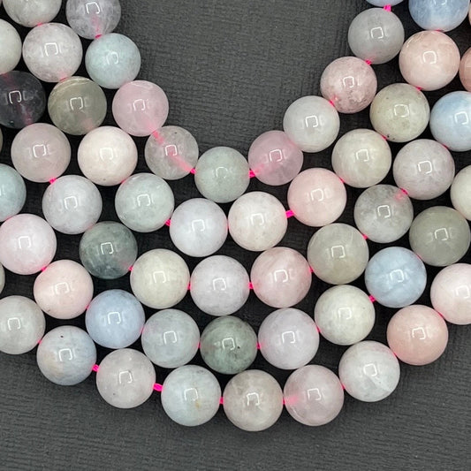 Natural 8mm Smooth Round Morganite Gemstone Strand of Beads