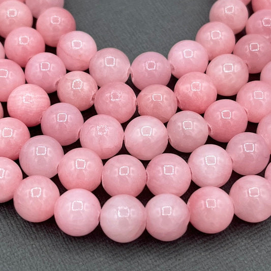 Natural 8mm Pink Smooth Round Masha Jade Strand of Beads