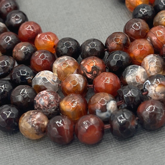 Natural 4mm/6mm/8mm Fire Crackle Agate Dyed Faceted Round Old Lace Gemstone Strand of beads