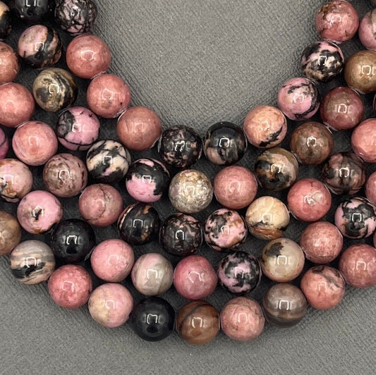 Natural 8mm/6mm/4mm Smooth Round Rhodonite Gemstone Strand of Beads