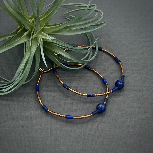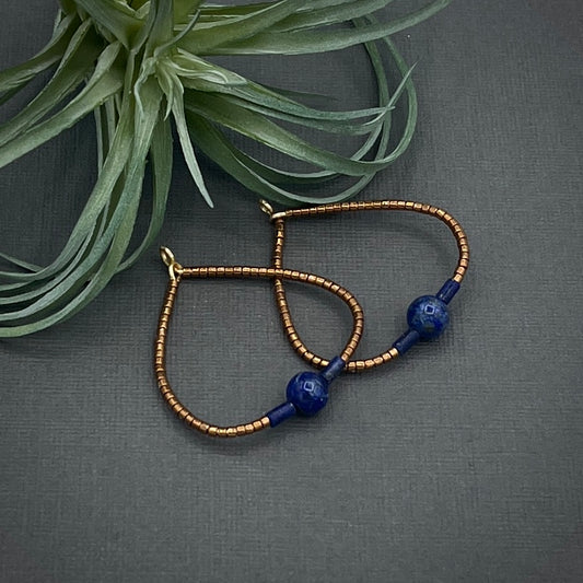 Genuine Gemstone Lapis Lazuli Blue and Bronze Miyuki Large Hoop Earrings