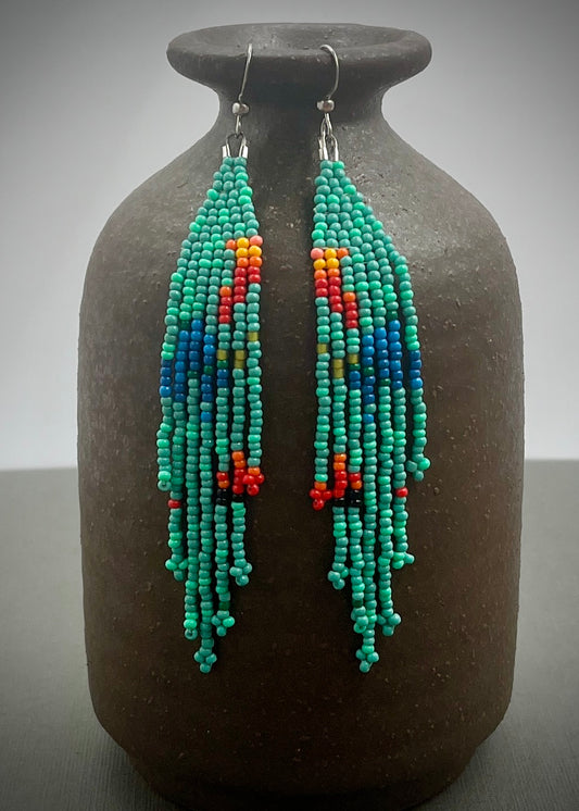 Handmade Turquoise Woven Fringe Beaded Dangle Earrings