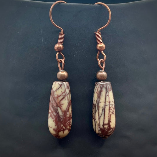 Copper Natural Genuine Picasso Jasper/Red Creek Jasper Drop Earrings