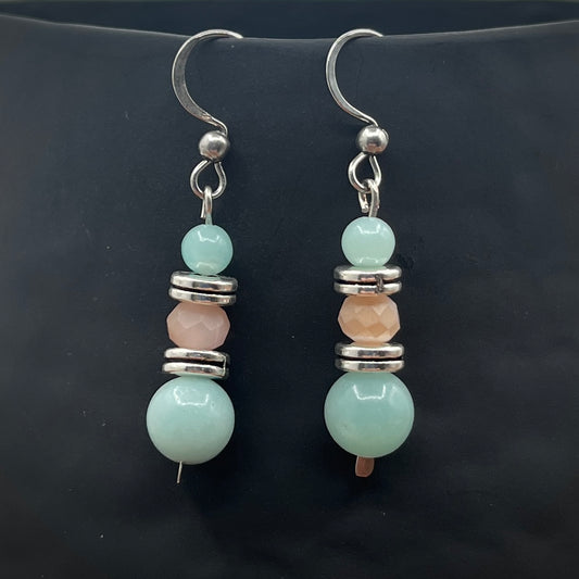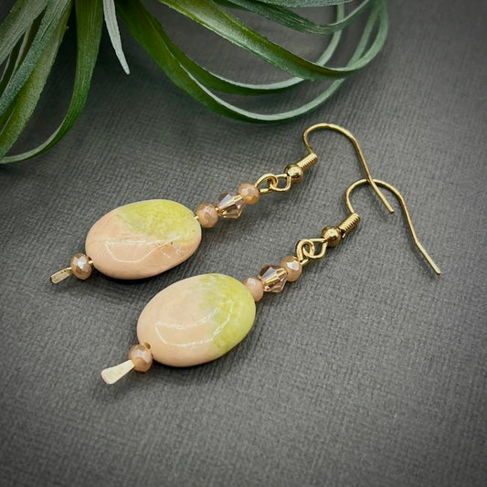 Lime and Pink Natural Jasper Gemstone Drop Earrings with Pink and Gold Accents
