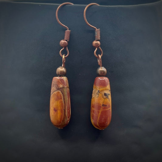 Copper Natural Genuine Picasso Jasper/Red Creek Jasper Drop Earrings