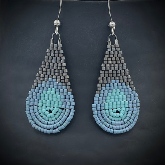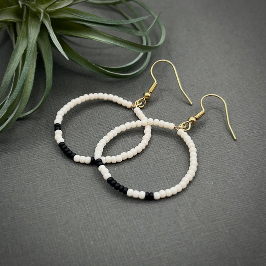 Tribal Black and White Seed Beed Drop Hoop Earrings