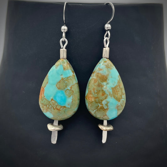Hand Forged Turquoise and Sterling Silver Drop Earrings
