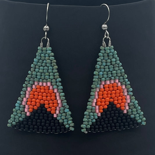 Sunrise Pyramid Hand Woven Seed Bead Drop Earrings