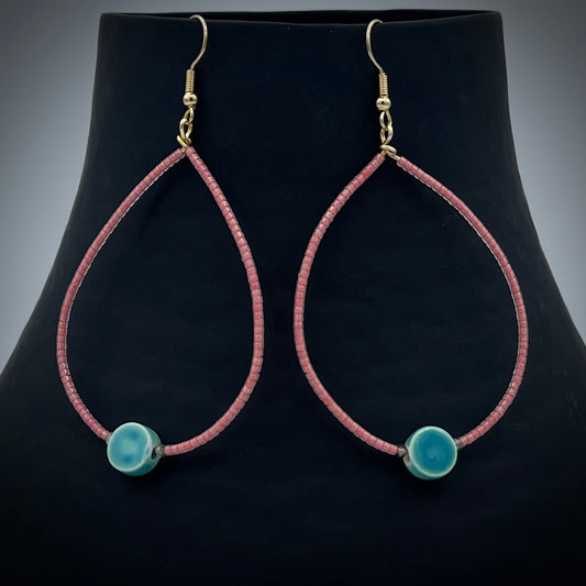Small or Large Teardrop Pink and Blue/Green Beaded Earrings