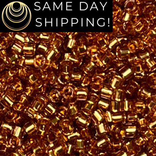 DB2524 (1 gram-20 grams) Miyuki Size 11/0 Delica Beads 24 kt Gold Lined Champagne-Free Container! Same Day Shipping!