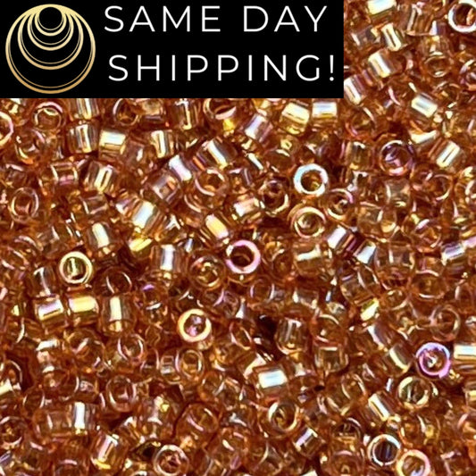 DB1241 (1 gram-20 grams) Miyuki Size 11/0 Delica Beads Transparent Marigold AB-Free Container! Same Day Shipping!