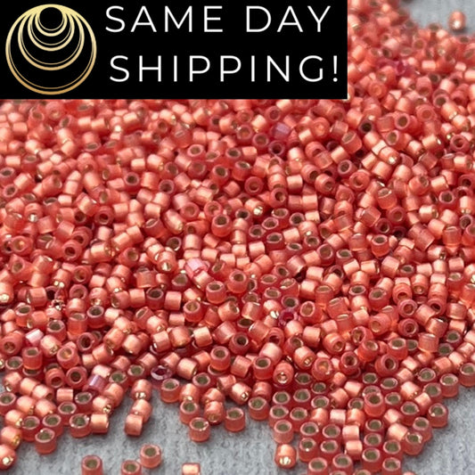 DB2178 SAME DAY SHIPPING! 1-20 Grams Miyuki 11/0 Delica Beads Duracoat Semi-Frosted Silver-Lined Dyed Papaya, Free Container