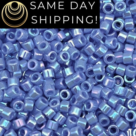 DB167 SAME DAY Shipping! 1-20 Grams Miyuki 11/0 Delica Beads Opaque Medium Blue AB Rainbow -Free Container!