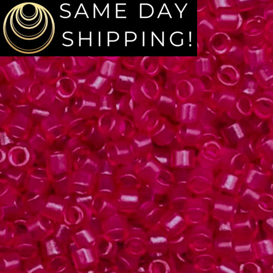 DB775 SAME DAY SHIPPING! 1-20 Grams Miyuki 11/0 Delica Beads Dyed Semi-Matte Transparent Hot Pink-Free Container!
