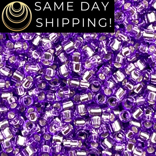 DB1347 SAME DAY SHIPPING! 1-20 Grams Miyuki 11/0 Delica Beads Dyed Silver Lined Purple-Free Container!
