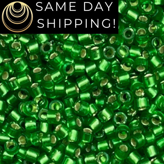 DB688 SAME DAY SHIPPING! 1-20 Grams Miyuki 11/0 Delica Beads Dyed Semi-Matte Silver Lined Green-Free Container!