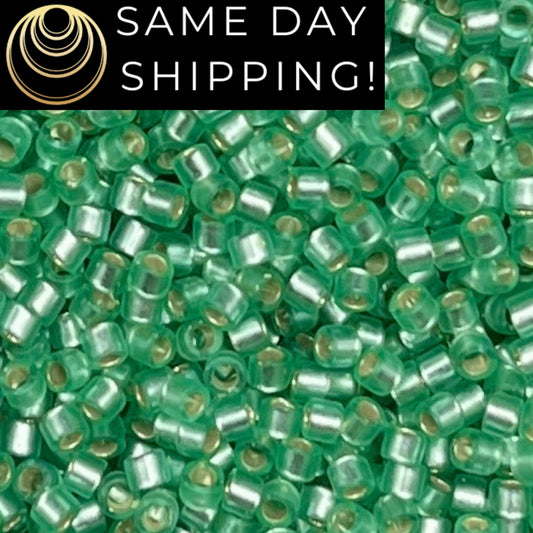 DB691 SAME DAY SHIPPING! 1-20 Grams Miyuki 11/0 Delica Beads Dyed Semi-Matte Silver Lined Mint Green-Free Container!