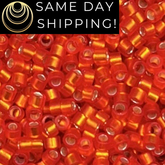 DB682 SAME DAY SHIPPING! 1-20 Grams Miyuki 11/0 Delica Beads Dyed Semi-Matte Silver Lined Dark Orange-Free Container!