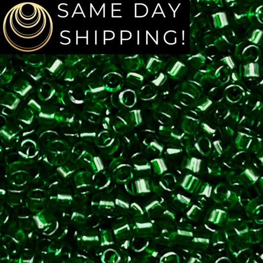 DB713 SAME DAY SHIPPING! 1-20 Grams Miyuki 11/0 Delica Beads Transparent Emerald Green -Free Container!