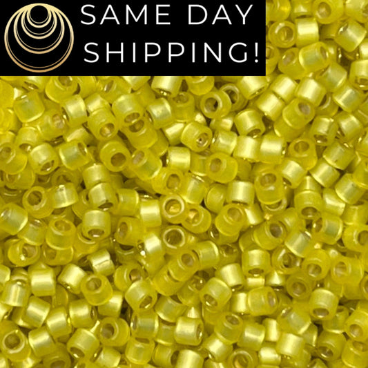 DB2187 (1 gram-20 grams) Miyuki Size 11/0 Delica Beads Duracoat Semi Frosted Silver Lined Dyed Citron-Free Container! Same Day Shipping!