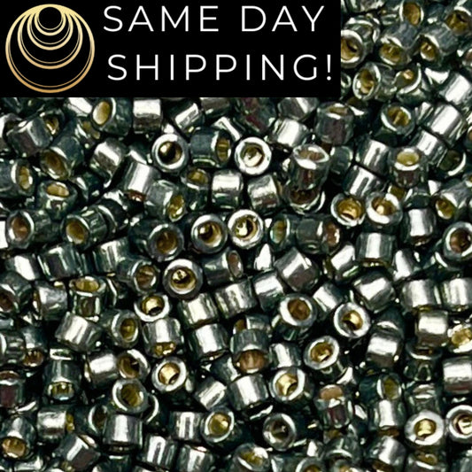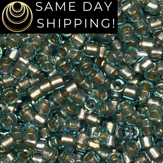 DB2165 (1 gram-20 grams) Miyuki Size 11/0 Delica Beads Duracoat Silver Lined Dyed Dark Sea Foam-Free Container! Same Day Shipping!