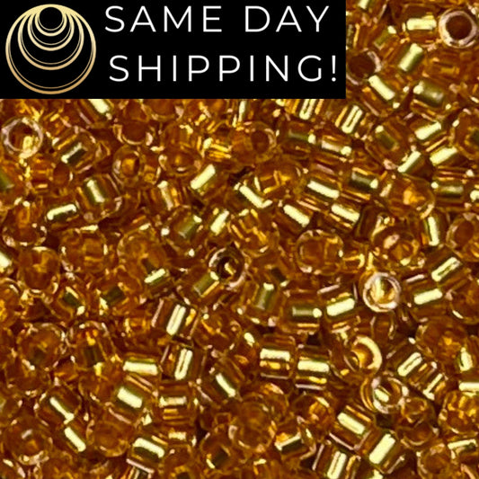 DB2521 (1 gram-20 grams) Miyuki Size 11/0 Delica Beads 24kt Gold Lined Warm Gold-Free Container! Same Day Shipping!