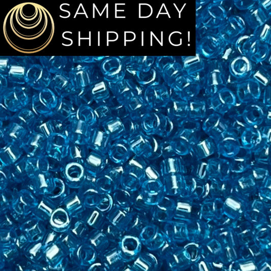DB1895 (1 gram-20 grams) Miyuki Size 11/0 Delica Beads Transparent Capri Blue Luster-Free Container! Same Day Shipping!