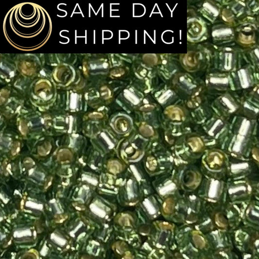 DB2163 (1 gram-20 grams) Miyuki Size 11/0 Delica Beads Duracoat Silver Lined Dyed Olive Green-Free Container! Same Day Shipping!