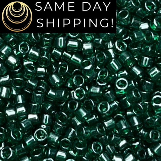 DB1894 (1 gram-20 grams) Miyuki Size 11/0 Delica Beads Transparent Emerald Luster-Free Container! Same Day Shipping!