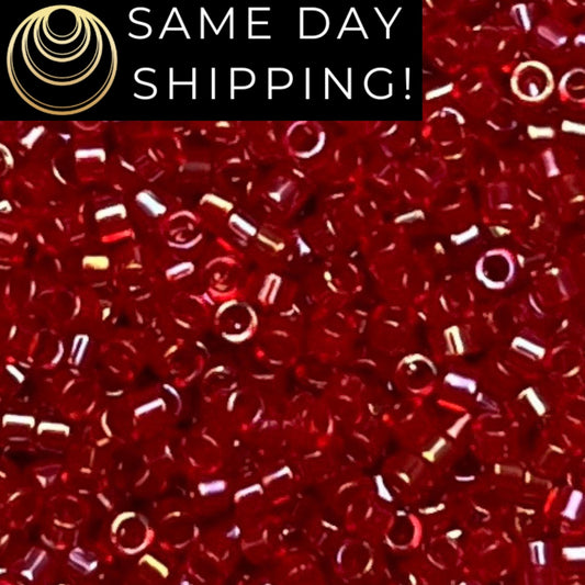 DB295 Same Day Shipping! 1 Gram up to 20 Grams Miyuki 11/0 Delica Beads Red Lined AB -Free Container! DB0295 DB-295