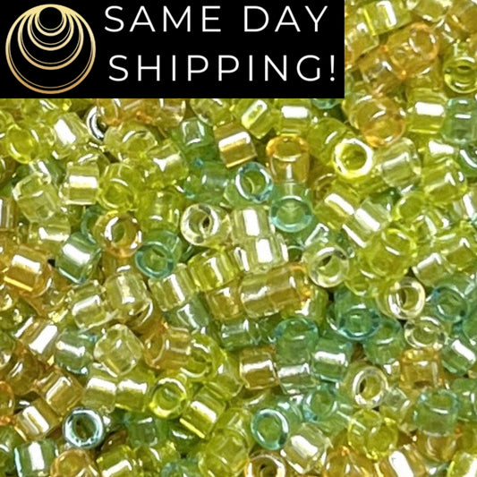 DB983 Same Day Shipping! 1 Gram-20 Grams Miyuki 11/0 Delica Beads Sparkling Lemon Lime Mix -Free Container! DB0983 DB-983