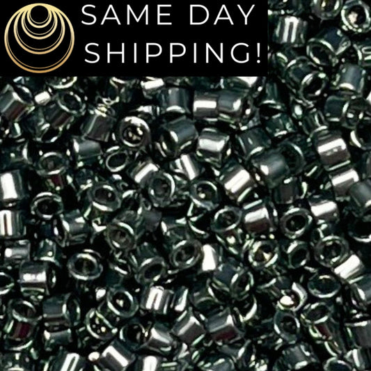 DB457 Same Day Shipping! 1 Gram-20 Grams Miyuki 11/0 Delica Beads Galvanized Dark Steel Green -Free Container! DB0457 DB-457